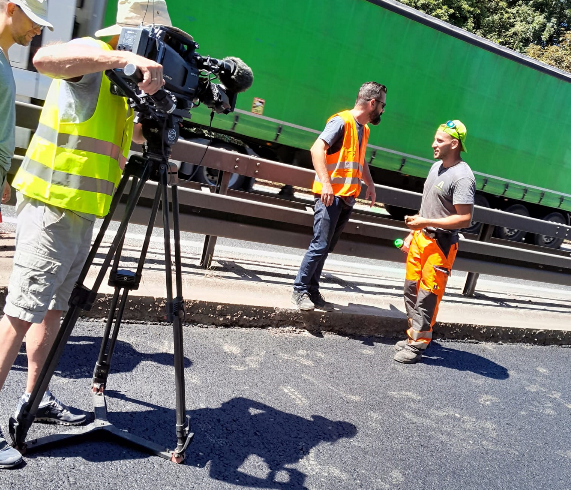 29.07.2022Das Kamerateam des Saarländischen Rundfunks bei den Aufnahmen auf der A620.